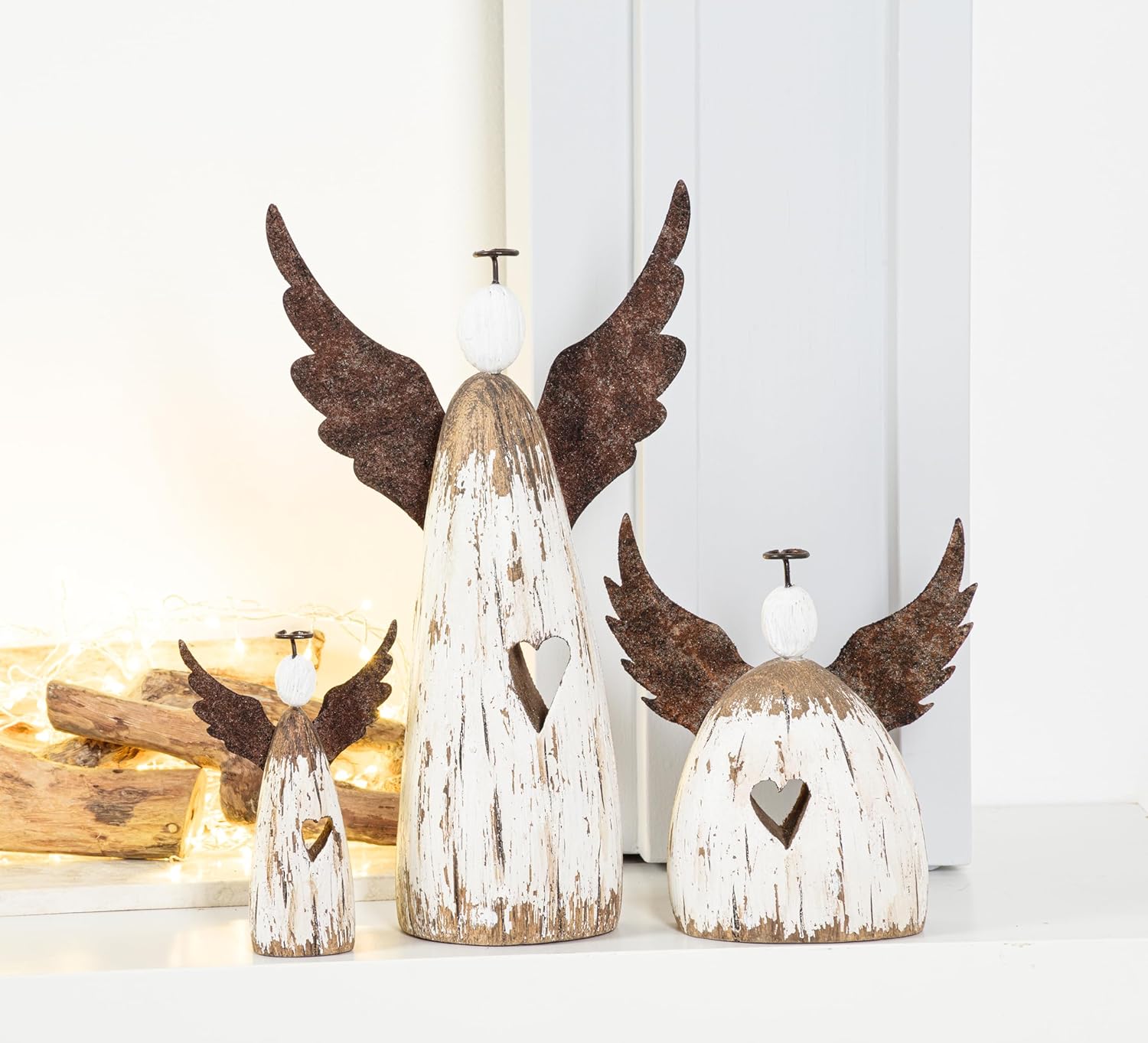 Add a heavenly touch to your holiday decor with this Large Rustic Angel figure. Crafted out of wood, the farmhouse look of this minimalist angel complete with simple halo and wings is sure to add some folksy charm to Christmas decor. Other rustic angels also available.
