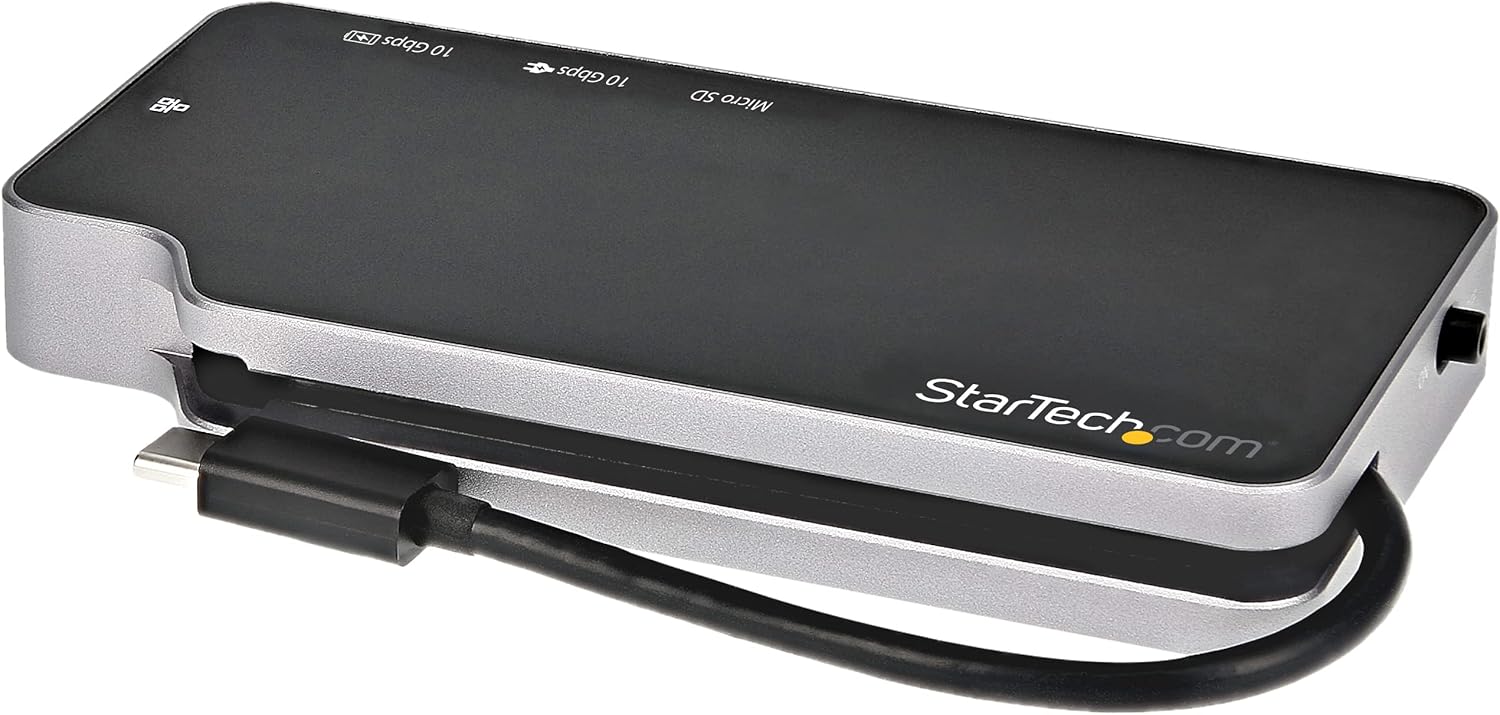 USBC multiport adapter with 4K HDMI or 1080p VGA video/display/monitor/10Gbps USB 3.2/3.1 Gen 2 Hub with 1x USBA BC 1.2 fast charge port and 1x USBC PD or Data/microSD/Gigabit Ethernet Presentation mode switch prevents computer from launching screen saver/entering power save mode Bus powered or via external USBC power adapter USB TypeC mini dock w/ 100W Power pass through 15W for dock/up to 85W for laptop charging Windows/macOS/iPadOS/Chrome/Android Auto drivers. Specifications. Color Black, Gray. Size 0.60 x 4.90 in.. Wattage 100 W. Weight 0.3 lbs